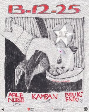 Able Noise is George and Alex’ experimental baritone guitar and drum duo, based between The Hague, the Netherlands and Athens, Greece. Through the use of voice, tape and alternative methods of playing their instruments, they create a minimal and visual musical performance. Their output is primarily focused on live concerts, letting their music be shaped by the physicality of their play- ing, the acoustic and aesthetic properties of the space, and the dynamics formed between themselves and their audience.